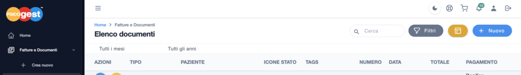 Home/Base di Conoscenza/Impostazioni Account/Impostazioni Fatture/Elenco documenti: modifica visualizzazione